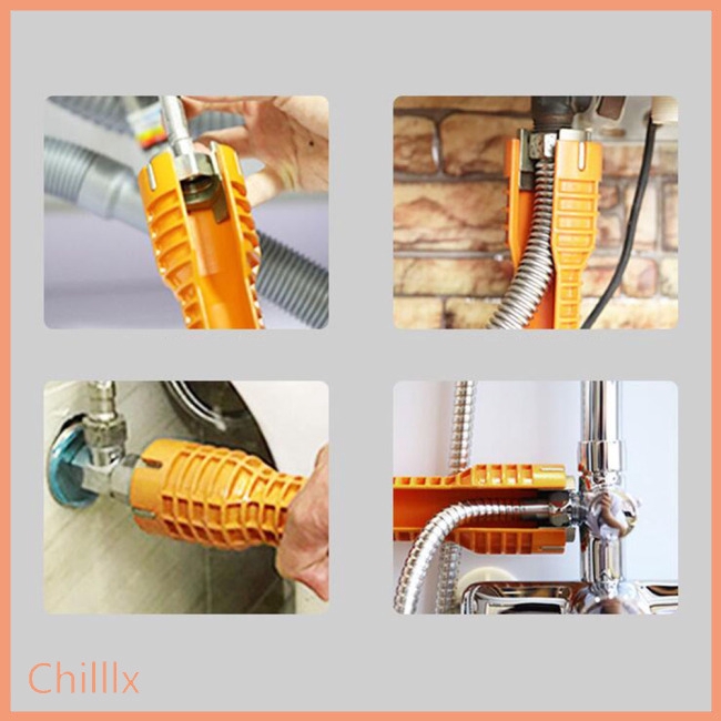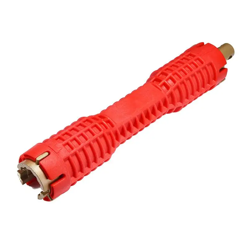 This lightweight tool with durable aluminum inserts handles many aspects of faucet installation including shut off valves, supply lines and basket strainers.