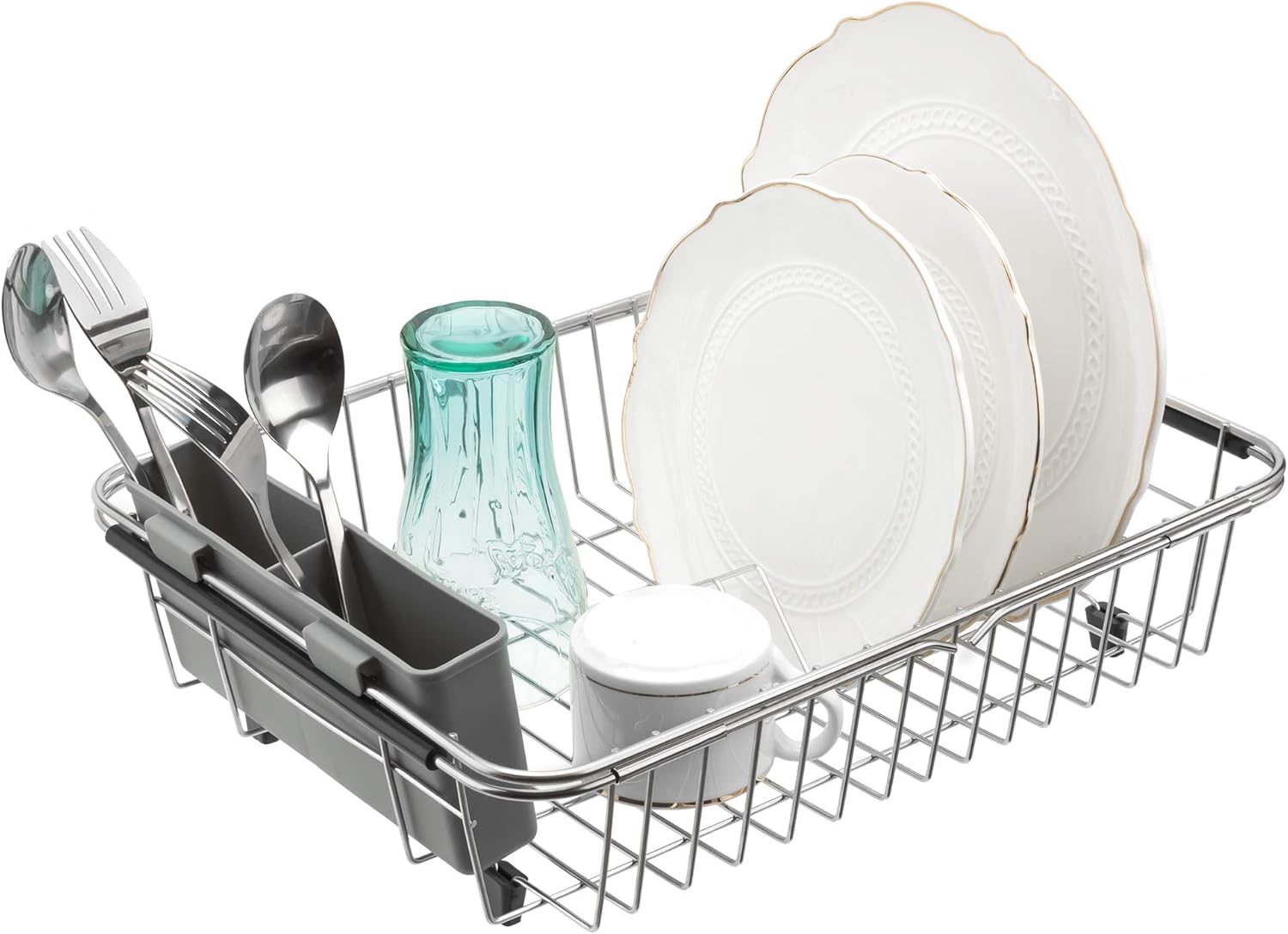 Toolf expandable dish drying rack over the sink adjustable dish rack in sink or on counter dish drainer with utensil holder rustproof for kitchen. There may be cheaper options on amazon but those will be made from chrome or a cheap stainless steel that will, within a few weeks. This is why we've gathered 10 of the best there is and give you this list. Amazon product review #001 chasstoo over the sink dish drying rack. Expandable dish drying racks come in models with multilevel racks and trays.