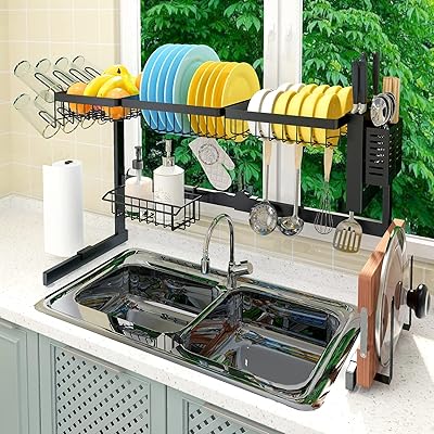 8) tsmine space saver dish drying rack over the sink for kitchen over the sink dish drying rack. Also, the top floor comes in handy for storing any kitchen items like a shelf.